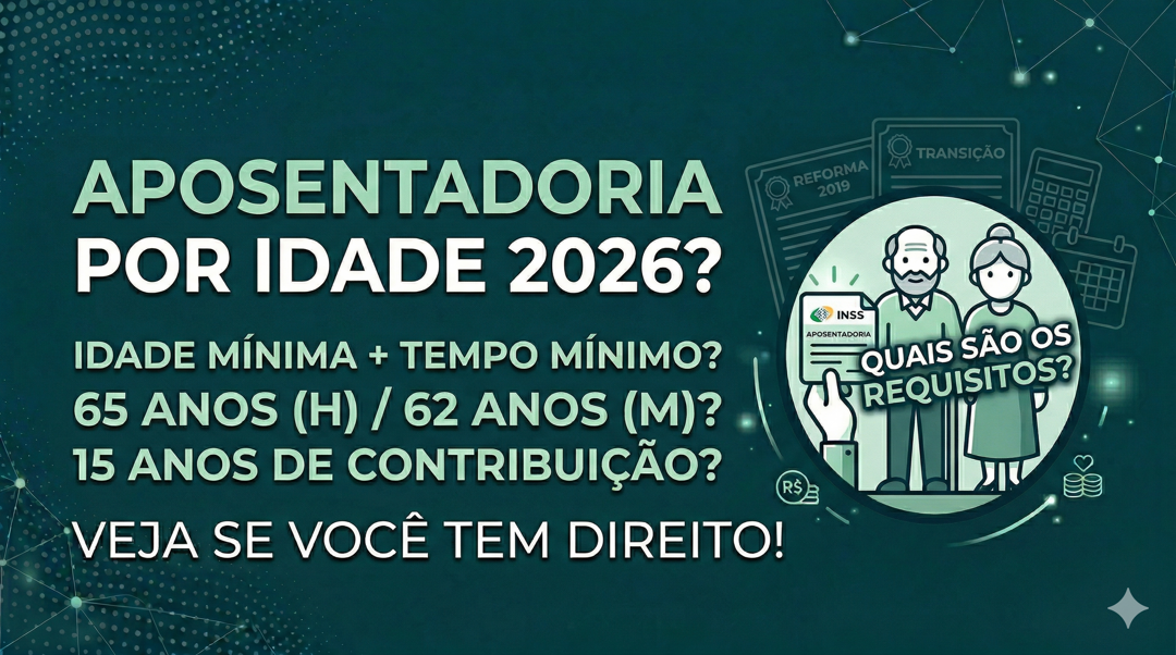 Quer saber se você já pode se aposentar por idade? Os requisitos são simples: idade mínima + tempo mínimo de contribuição.Em 2026, na maioria dos casos, funciona assim: homens se aposentam com 65 anos e pelo menos 15 anos de contribuição; mulheres com 62 anos e pelo menos 15 anos de contribuição. Mas atenção: existe uma diferença importante para quem começou a pagar o INSS depois da Reforma (13/11/2019).